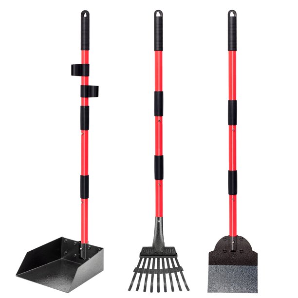 ROIUBPO Pooper Scooper, Detachable Long Handle Dog Poop Scooper with Heavy Duty Metal Rake, Tray & Spade, Durable Pooper Scooper for Large Medium Small Dogs, Great for Lawn, Grass, Dirt, Gravel